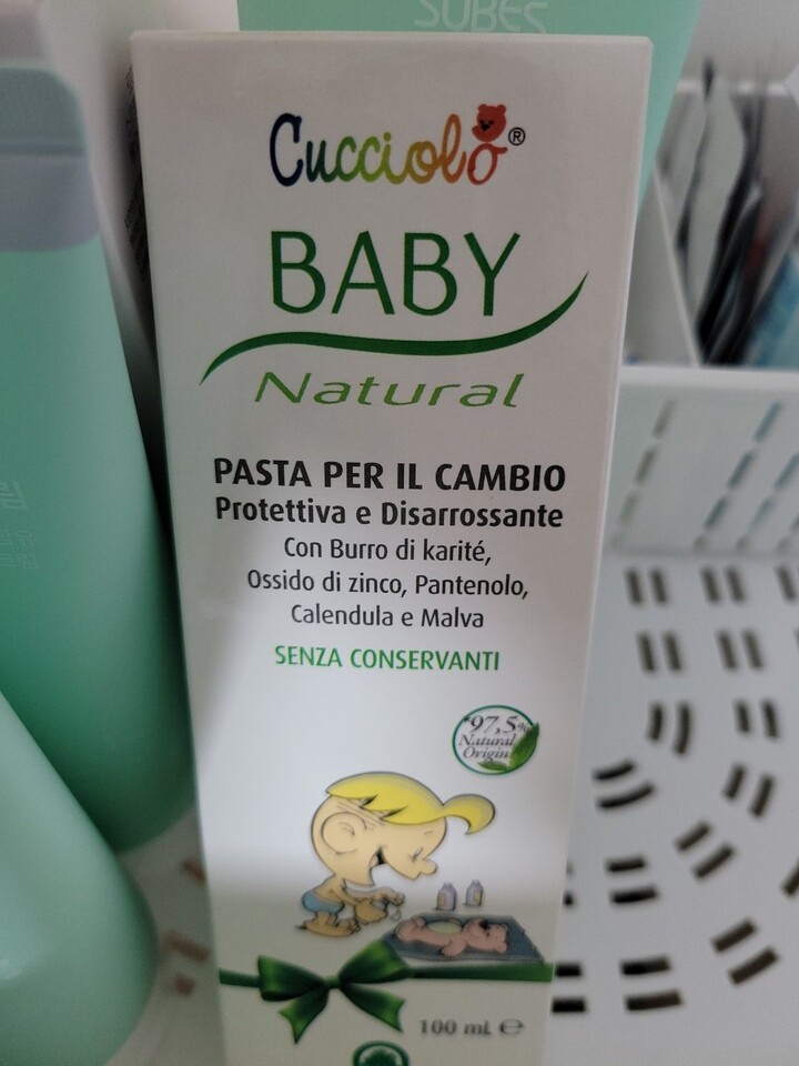 Natura House Cuciolo 기저귀 크림은 튜브에 들어 있습니다! 처음 짜낼 때 약간 힘들게 느껴질 수 있지만 부드럽게 진행됩니다.상태이다