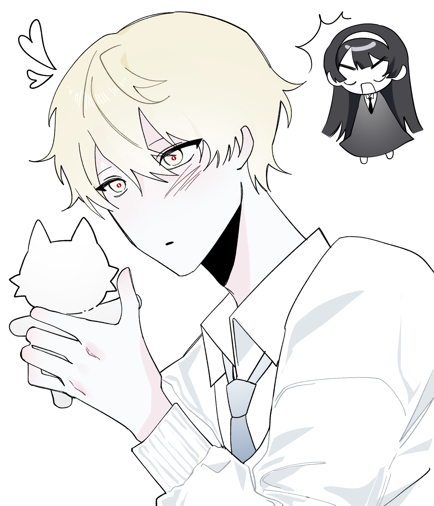 · 하얗고 부드러운 피부, 약간 날카로운 눈매, 생기가 없는 백금 눈동자 사이에 새빨간 눈동자. 언뜻 보기에 Sawyer는 무자비해 보입니다. 하지만 주변에서는 소여가 어렸을 때부터 볼이 붉어졌기 때문에 ‘강아지 같고 부끄러움이 많다’는 평을 자주 듣는다. 플러스 포인트는 귀여운 고양이 인형을 좋아한다는 것입니다.