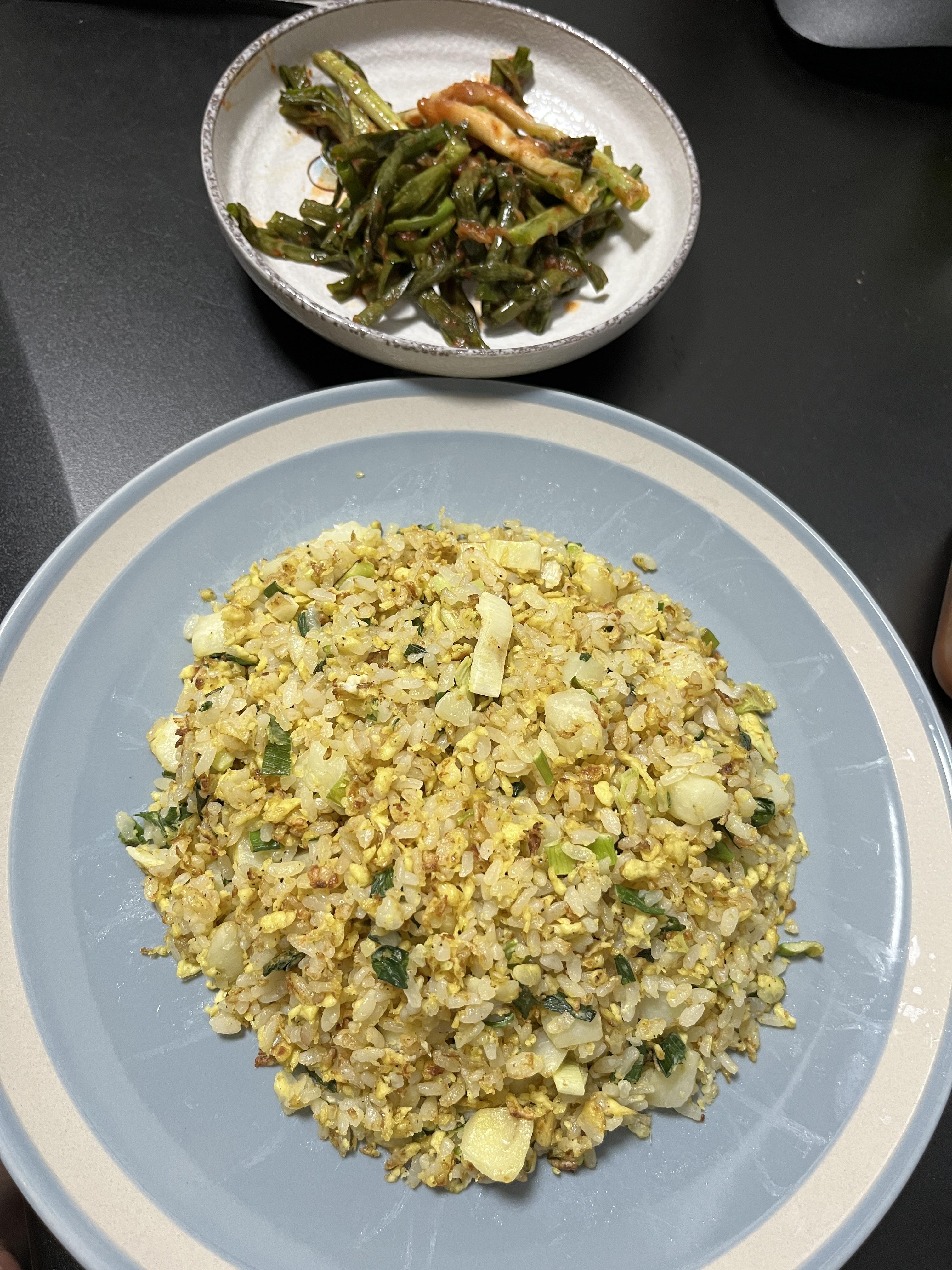 황금 계란과 파 김치 볶음밥