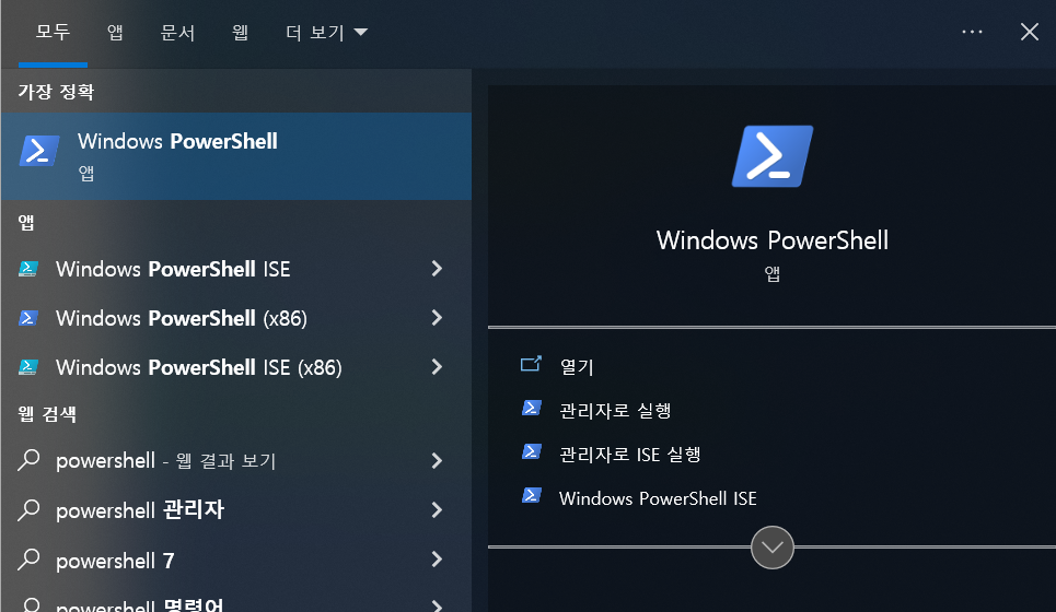 Windows Powershell을 관리자 권한으로 실행